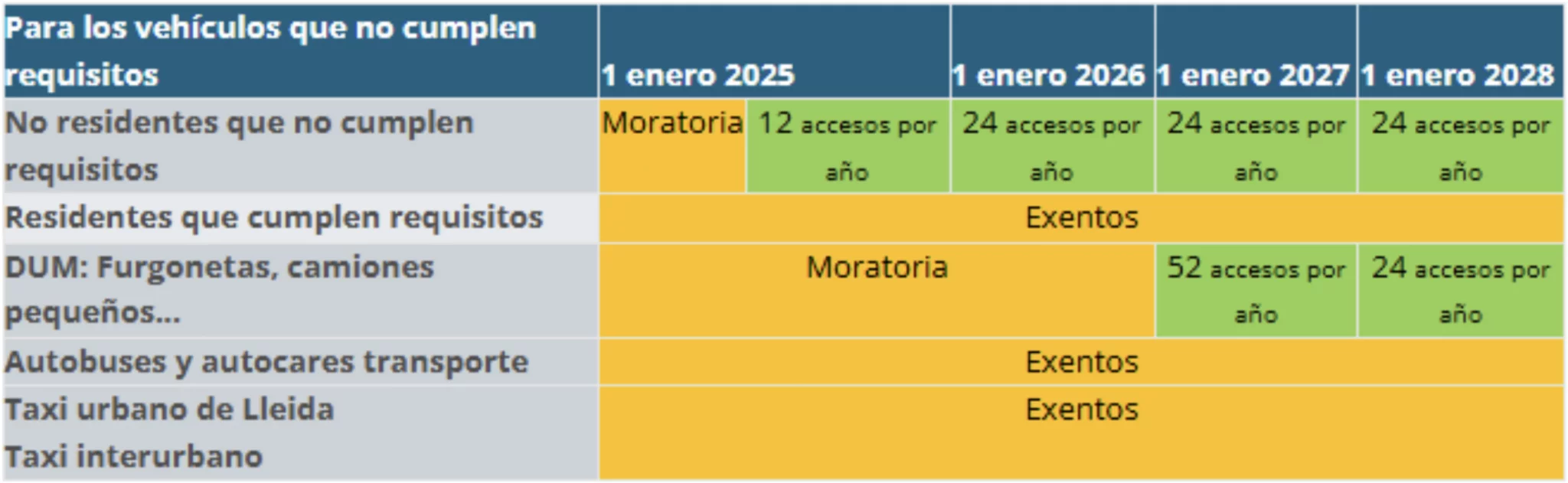 - Las personas titulares de los vehículos residentes en la ciudad de Lleida sin distintivo ambiental o con distintivo ambiental B (a partir del 1 de enero de 2028), tendrán la consideración de vehículos exentos de la aplicación de la Ordenanza reguladora de la ZBE de Lleida. Se considera como vehículo residente en la ciudad de Lérida aquel que tributa el IVTM en la propia ciudad.