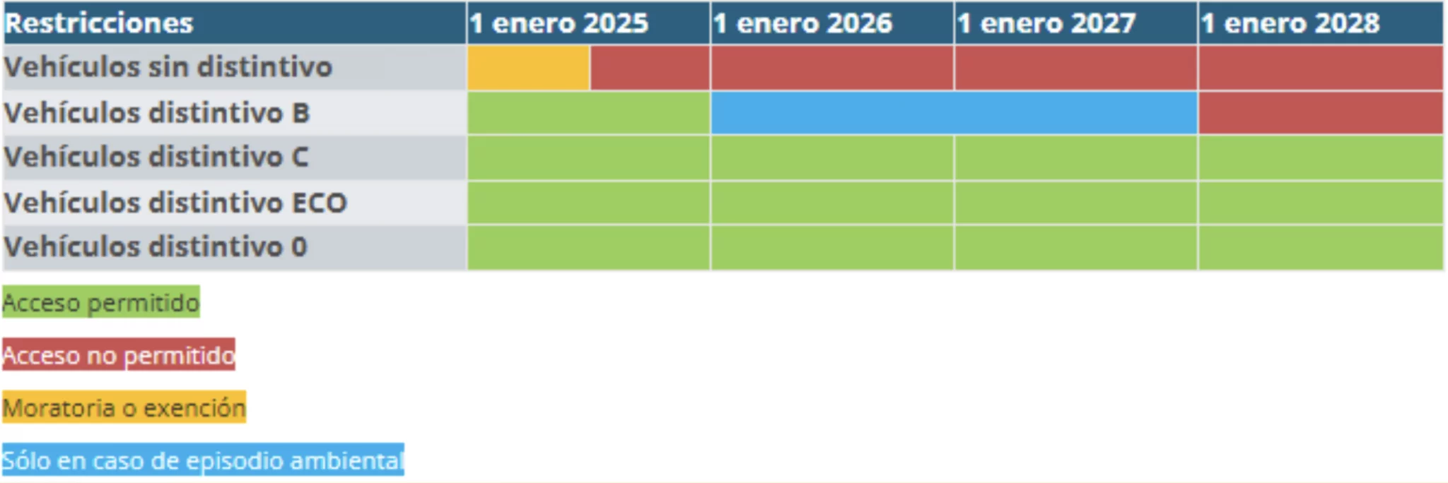 Las restricciones de los distintivos ambientales serán paulatinas a medida que entren en vigor las tres Zonas de Bajas Emisiones en 2025, 2028 y 2030: